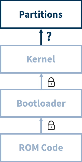 In this context, we decided to implement secure boot and extend its guarantees beyond the kernel to the entire software stack with dm verity. Our goal was clear: deliver a chain of trust from power-on to application execution.