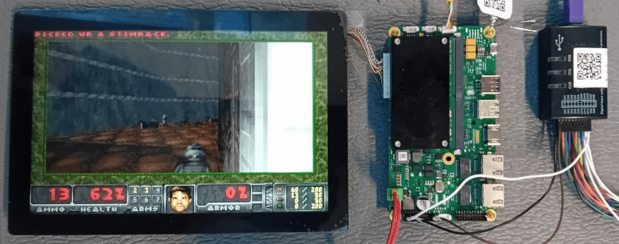 DOOM only requires access to the LVDS screen and a USB keyboard. It doesn’t rely on systemd-managed services like networking.