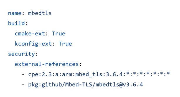 We actively contribute to the Zephyr ecosystem by helping integrate CPE and PURL identifiers into as many modules as possible. This enables reliable component identification and cross-referencing with vulnerability databases.